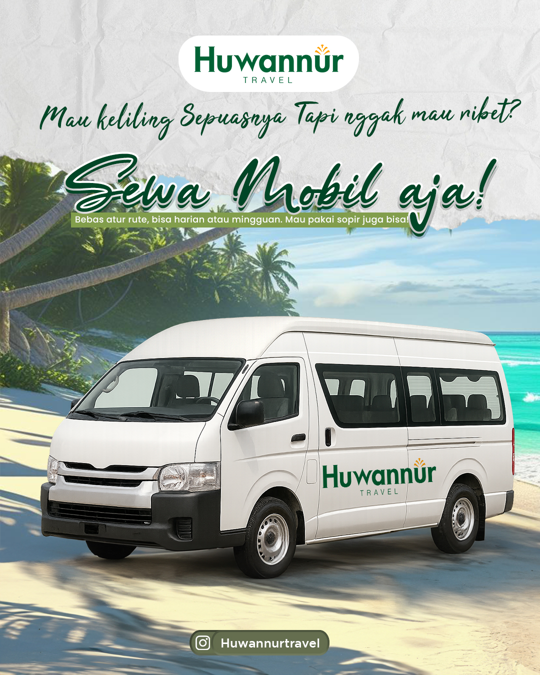 Keliling sepuasnya, tanpa ribet! Mau liburan bareng keluarga atau jalan-jalan bareng teman, tinggal Sewa Mobil di Huwannur Travel aja! ✅ Bebas atur rute